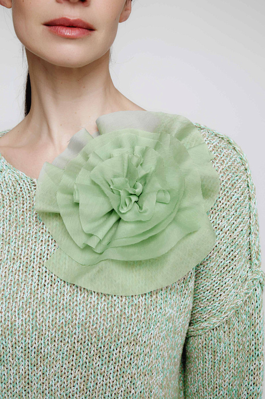 Эта изысканная брошь, выполненная в форме розы, представляет собой истинное произведение искусства, созданное с любовью и вниманием к мельчайшим деталям. Каждый лепесток этой великолепной розы был тщательно обработан вручную, что позволило создать неповторимый и выразительный образ. Брошь изготовлена из прозрачной ткани тенсель, которая придаёт лёгкость и воздушность. Благодаря встроенному магниту, брошь надёжно фиксируется на одежде, обеспечивая тем самым удобство и комфорт при использовании. Обладательница такого украшения может быть уверена в своей уникальности.