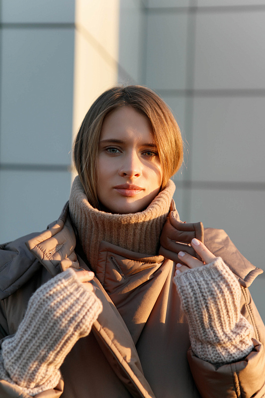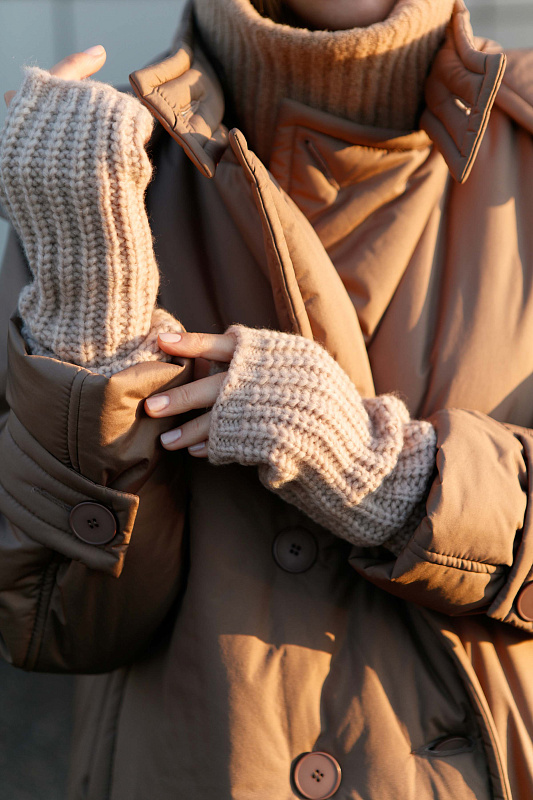 Цельновязанные митенки из пряжи нежнейшей шерсти бэби альпаки и тонкой шерсти мериноса,  выполненные ластичным переплетением. Теплый и уютный аксессуар, придающий образу завершенность или акцент.