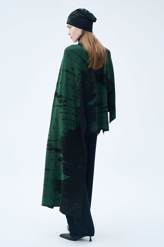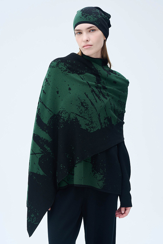 Вязаный гладкий шарф-палантин. Выполнен на контрасте матовой текстуры вискозы с кашемиром и глянцевой вискозы жаккардовым переплетением в виде графического рисунка.