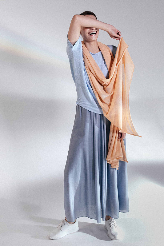 Легкий палантин из фантазийной итальянской пряжи - прекрасное завершение весеннего образа.