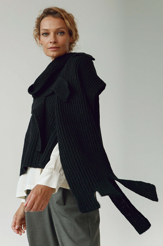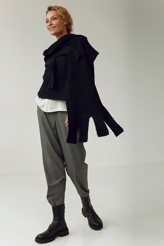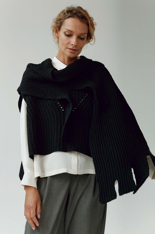 Теплый палантин объемной вязки полуфанг из пряжи нежной шерсти бэби альпаки и тонкой шерсти мериноса. Оригинальные края, вывязанные в виде бахромы.