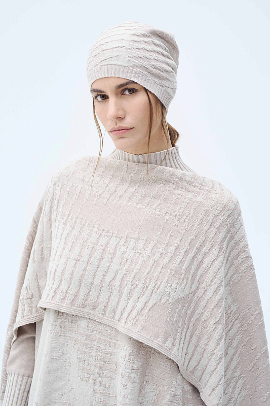 Вязаная шапка из нежной  вискозы с кашемиром.  Выполнена переплетением с абстрактным рисунком. Тонкое полотно делает изделие тактильно приятным.