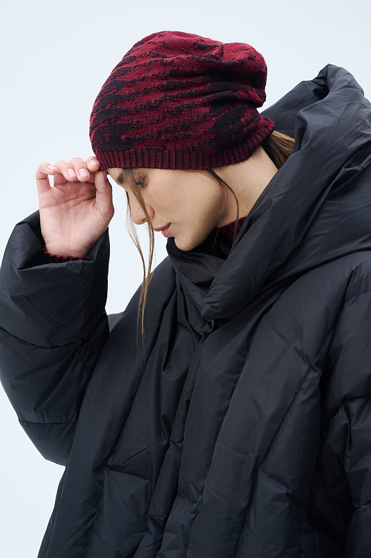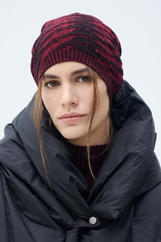 Вязаная шапка из нежной  вискозы с кашемиром.  Выполнена переплетением с абстрактным рисунком. Тонкое полотно делает изделие тактильно приятным.
