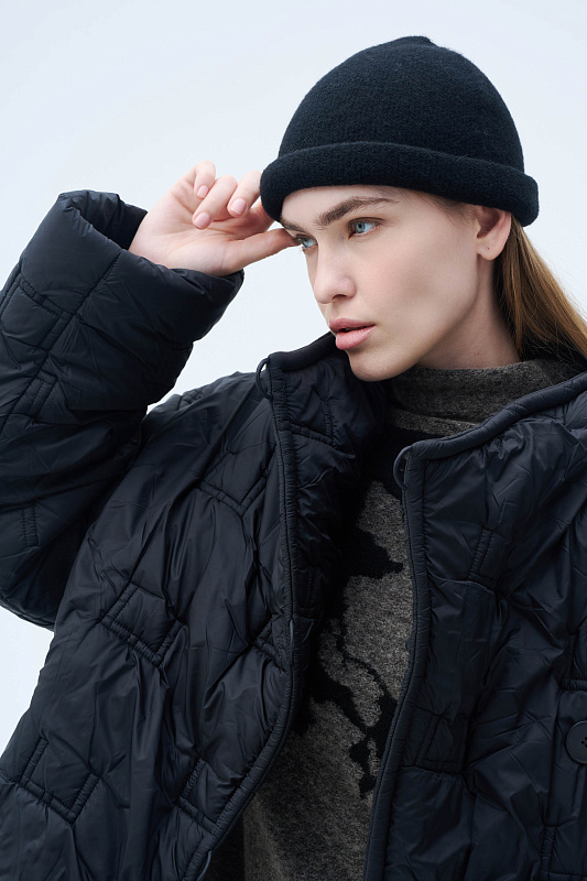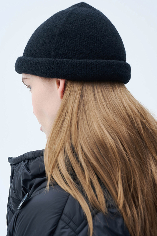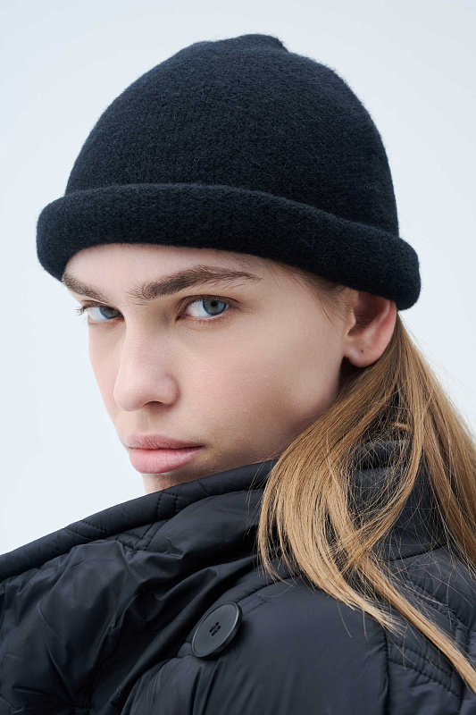 Цельновязаная шапка из буклированной пряжи в составе с ценной и мягкой шерстью Яка силуэта «овал».  В этом аксессуаре мягкий и воздушный эффект пряжи раскрывается за счет переплетения.