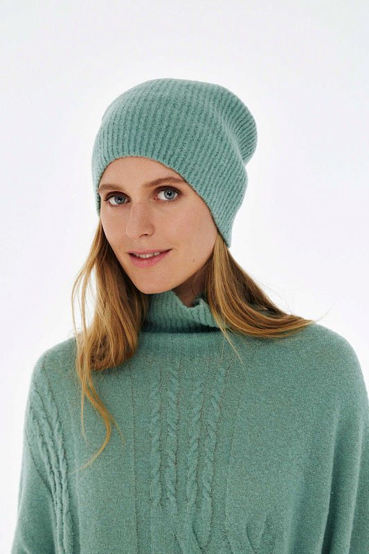 Плотная, теплая цельновязаная шапка из буклированной пряжи. С небольшим дополнительным объемом. Выполнена ластичным   переплетением   в три нити, идеальное решение для холодного времени года.