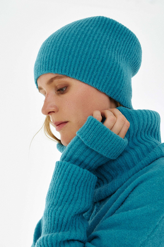 Плотная, теплая цельновязаная шапка из буклированной пряжи. С небольшим дополнительным объемом. Выполнена ластичным   переплетением   в три нити, идеальное решение для холодного времени года.