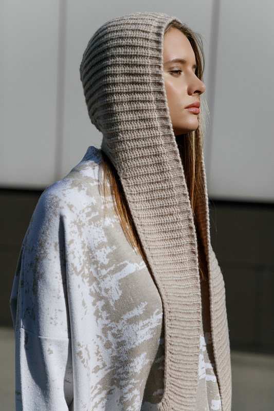 Цельновязанная шапка с ушками из пряжи нежнейшей шерсти бэби альпаки и тонкой шерсти мериноса,  выполненная ластичным переплетением.