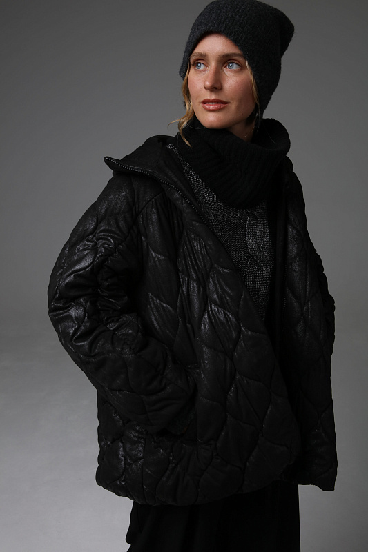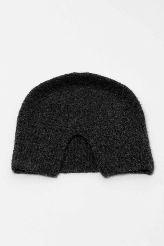 Элегантная мягкая теплая цельновязанная шапка из тонкой буклированной пряжи с разрезом.