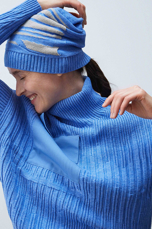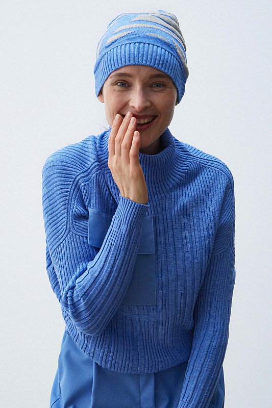 Легкая шапка из нежной итальянской вискозы с рисунком из фасонной пряжи, выполненная в технологии жаккарда.
