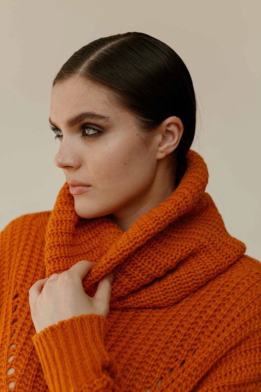 Теплый снуд объемной вязки полуфангиз пряжи нежной шерсти бэби альпаки и тонкой шерсти мериноса.