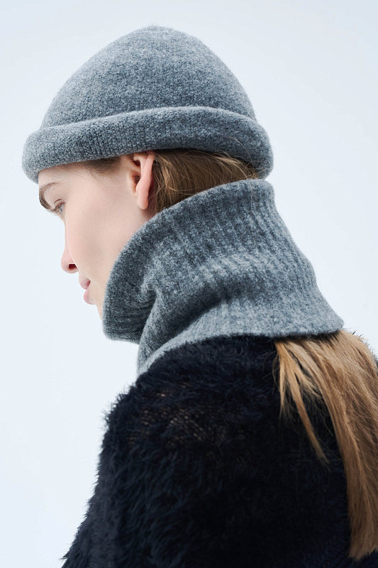 Объемный цельновязанный снуд  из буклированной пряжи в составе с ценной и мягкой шерстью Яка. Выполнен ластичным переплетением. Теплый и уютный аксессуар, придающий образу завершенность или акцент.