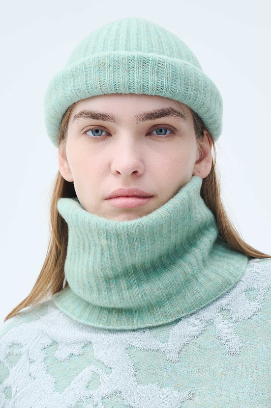 Объемный цельновязанный снуд  из буклированной пряжи в составе с ценной и мягкой шерстью Яка. Выполнен ластичным переплетением. Теплый и уютный аксессуар, придающий образу завершенность или акцент.