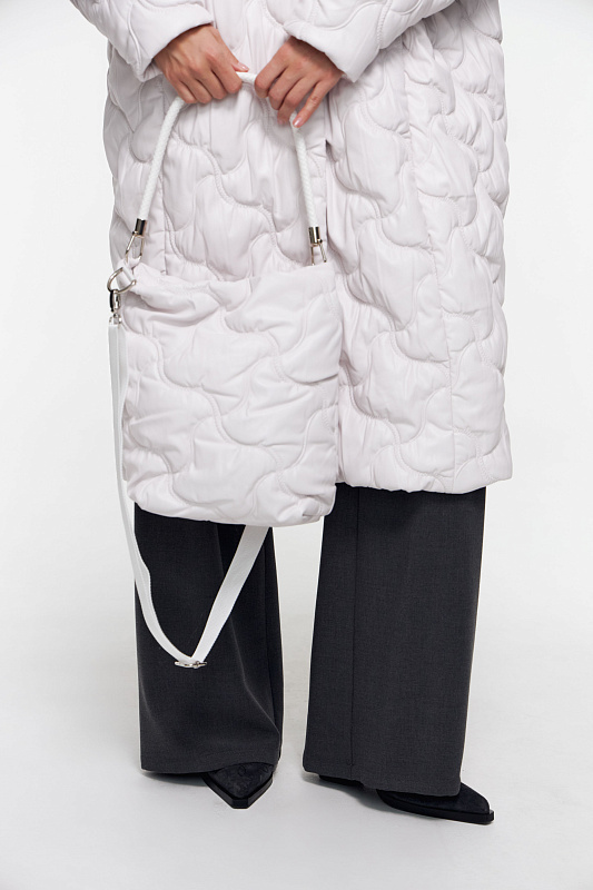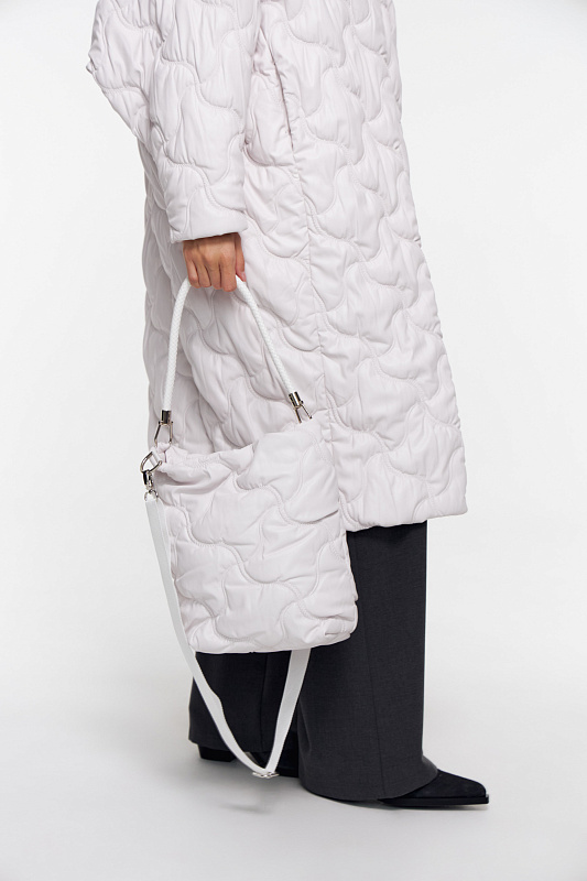 Сумка имеет оригинальный дизайн, выполнена из эко кожи, особенностью которой является устойчивость к перепадам температур, простота ухода. Объемная замысловатая строчка делает изделие уникальным, привлекая заинтересованные взгляды. Подкладка играет важную роль в обеспечении долговечности сумки и выполнена из шелковистой поливискозы. Основное отделение застегивается на тракторную молнию. Внутри есть небольшой карман. Ручка выполнена из жесткого шнура. Съёмный плечевой ремень позволяет носить сумку на плече, освобождая руки и обеспечивая удобство. Дно жесткое.