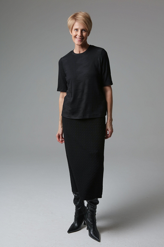 Базовая блуза из вискозы с добавлением эластана с округлым вырезом. Ткань достаточно плотная и одновременно дышащая, обволакивающая и пластичная, приятная к телу. Удлиненный рукав ½. Будет удачно сочетаться с классическими брюками или юбкой, жакетами и кардиганами. Универсальна для офиса и повседневной жизни.