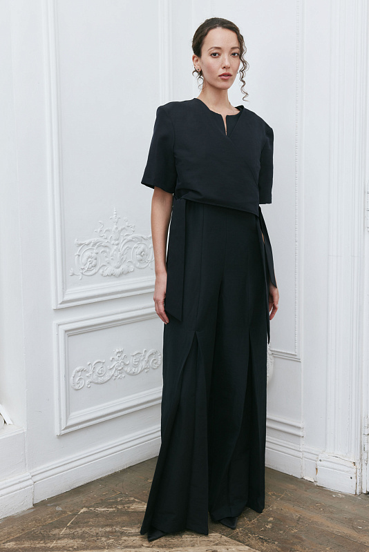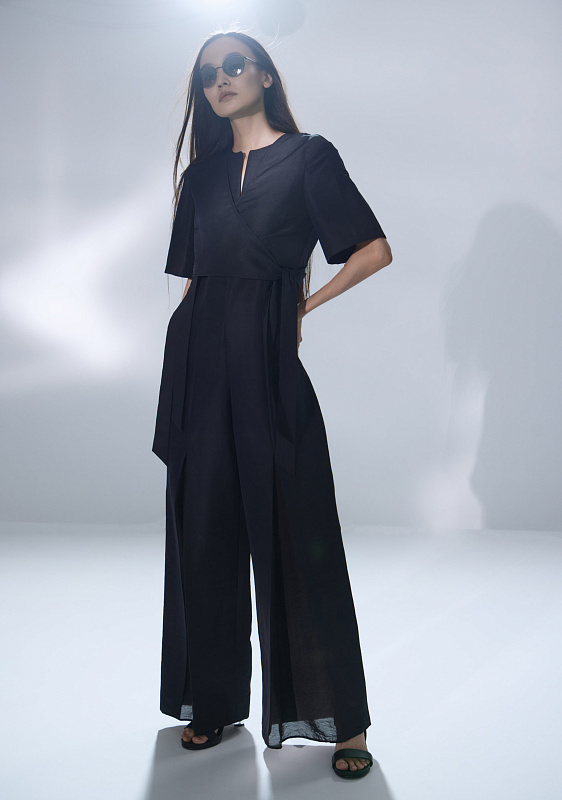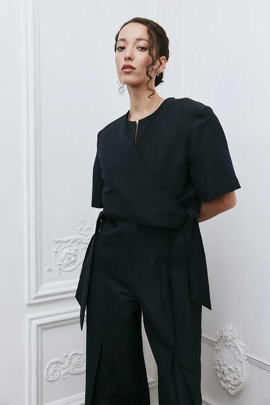 Болеро — это элегантный и стильный укороченный жакет длиной до талии, который привлекает внимание своим лаконичным дизайном и изысканными деталями. Болеро часто украшают разнообразными элементами декора. Наши дизайнеры внесли в крой нотку загадочности и шарма. Широкие завязки служат не только украшением, но и функциональным элементом. Они являются гармоничным завершением, выполняя функцию пояса. Завязки могут быть зафиксированы с боков, спереди и сзади, а также могут свободно ниспадать, что позволяет акцентировать внимание на деталях. Нахлест ткани при фиксации завязок образует очень женственный V-образный вырез. Сочетание льна и хлопка в одной ткани создает материал, который объединяет в себе лучшие свойства обоих волокон. 2% эластана — для комфортной, правильной посадки изделия.