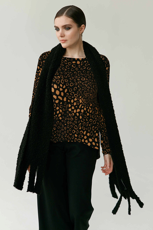 Базовая вискозная блуза с круглой горловиной и оригинальным рисунком  - прекрасная основа для создания креативного образа.