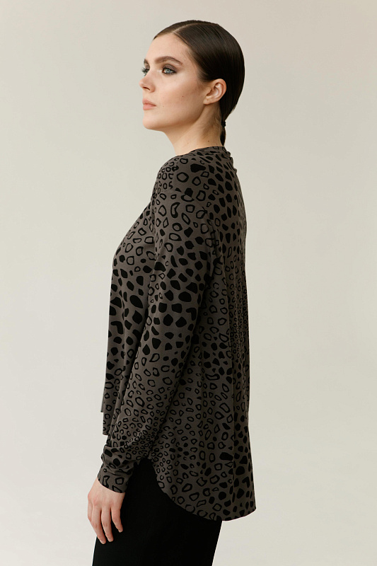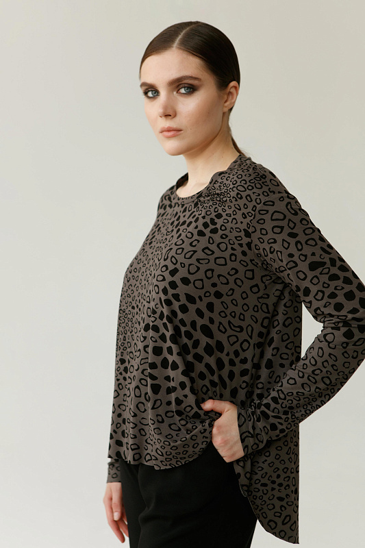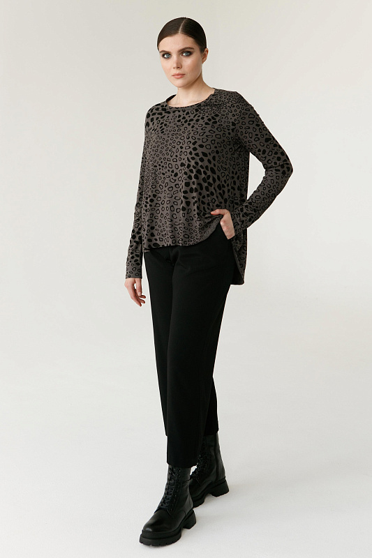 Базовая вискозная блуза с круглой горловиной и оригинальным рисунком  - прекрасная основа для создания креативного образа.