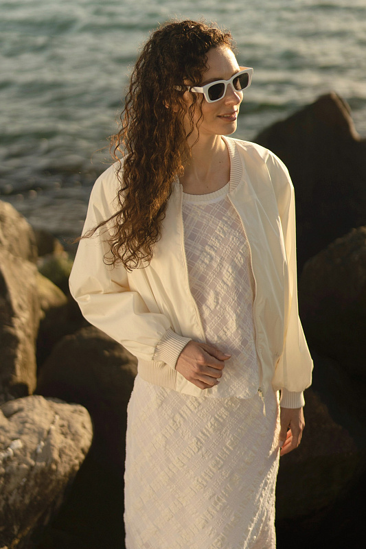 Короткая блуза словно невесомая вуаль из хлопка с добавлением льна создает особое, воздушное настроение.