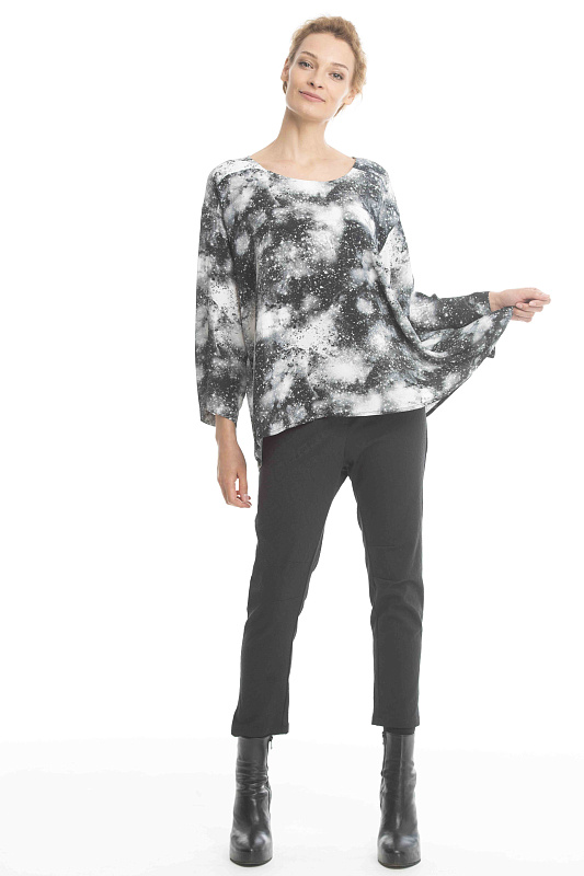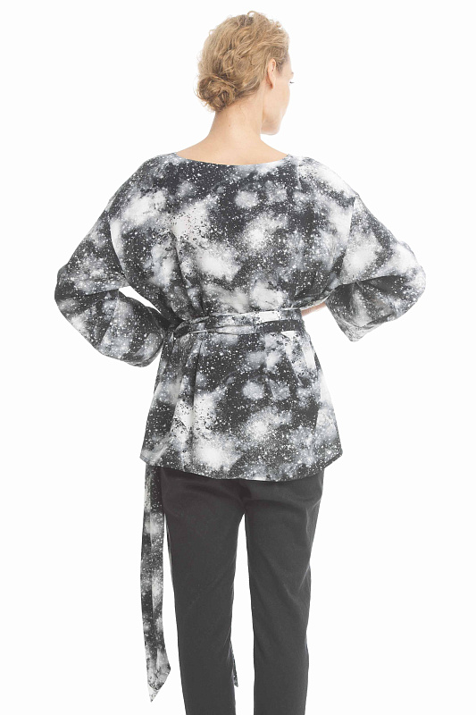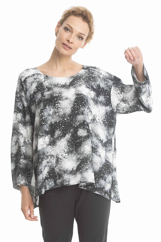 Блуза из вискозного материала с космическим черно-белым рисунком.
