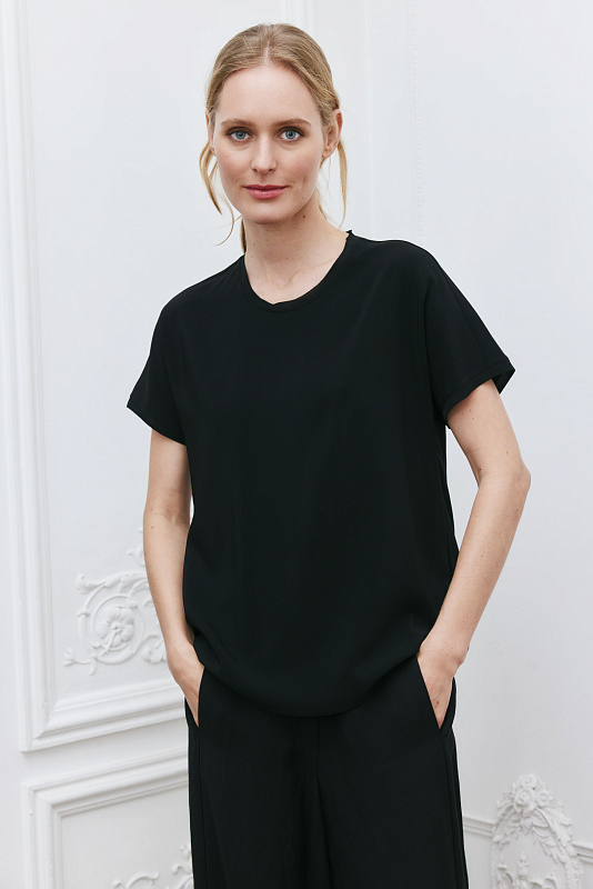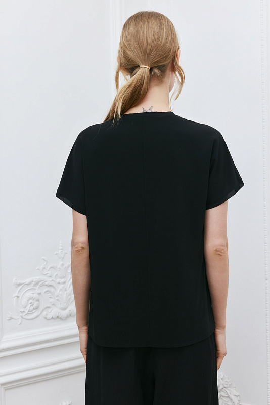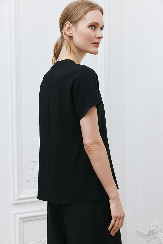Прямая свободная блуза с небольшим цельнокроеным рукавом — настоящая находка. Нижняя блуза предложена дизайнерами для того, чтобы подчеркнуть красоту и элегантность верхнего наряда. Она становится изысканным обрамлением, которое позволяет рисунку на верхнем слое засиять ещё ярче, если вы выбираете контрастный цвет. Подбор блузы в цвет верхнего наряда позволит создать гармоничный образ,основанный на одном цвете или его оттенках. Монохром в одежде — это стильный и элегантный выбор, который всегда выглядит современно и лаконично.