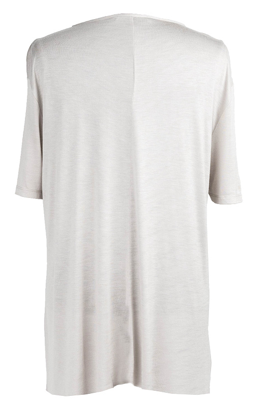 Базовый топ прямого кроя из нежнейшей вискозы. Вырез горловины круглый, рукав короткий.