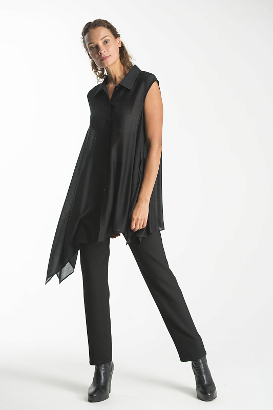 Блуза "Трапеция-углы с воротником, без рукавов"