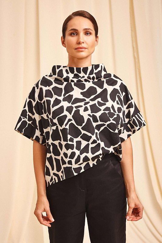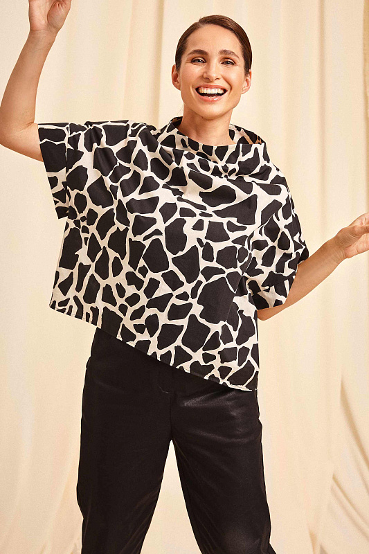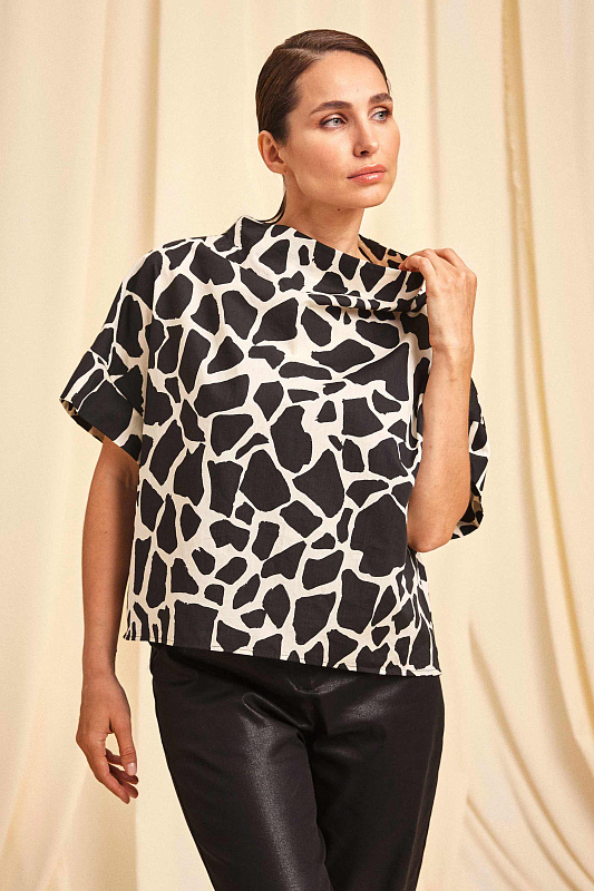 Эффектная хлопковая блуза с оригинальным принтом, напоминающим окрас жирафа.