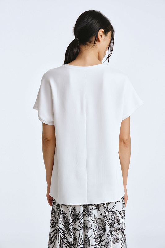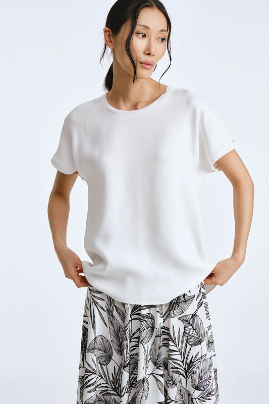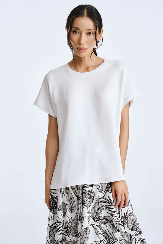 Прямая, свободная блуза с небольшим цельнокроеным рукавом — настоящая находка. Нижняя блуза предложена дизайнерами для того, чтобы подчеркнуть красоту и элегантность верхнего наряда. Она становится изысканным обрамлением, которое позволяет рисунку на верхнем слое засиять ещё ярче, если вы выбираете контрастный цвет. Подбор блузы в цвет верхнего наряда позволит создать гармоничный образ, основанный на одном цвете или его оттенках. Монохром в одежде — это стильный и элегантный выбор, который всегда выглядит современно и лаконично.