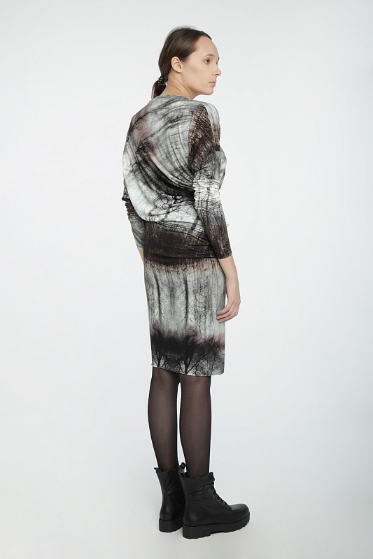 Асимметричная туника Деревья - с основным принтом осенне-зимней коллекции. За счет асимметричного кроя драпируется мягкими складками, будто обволакивает. Ощущение комфорта еще ярче благодаря шелковистой вискозе, из которой пошита туника.