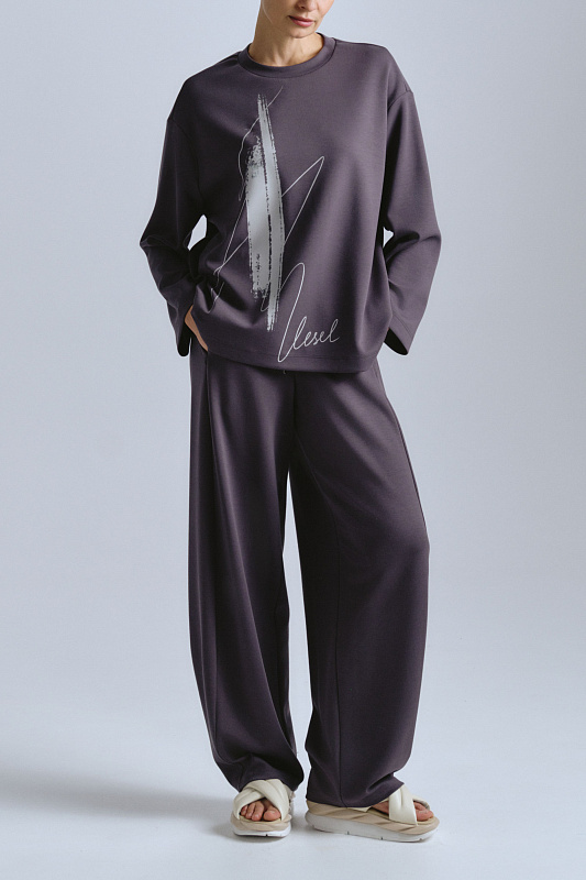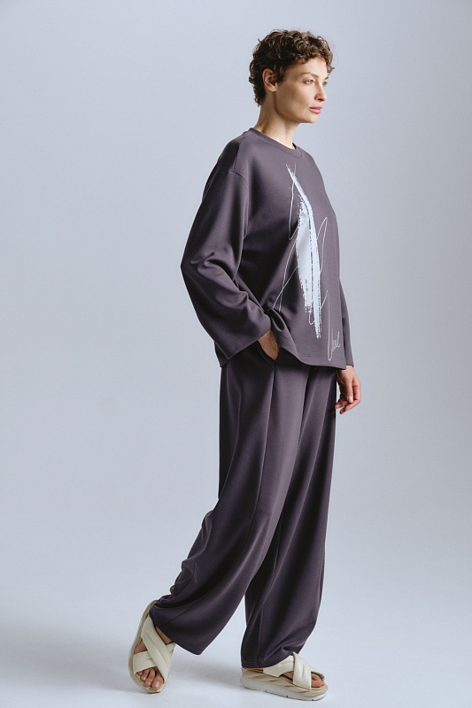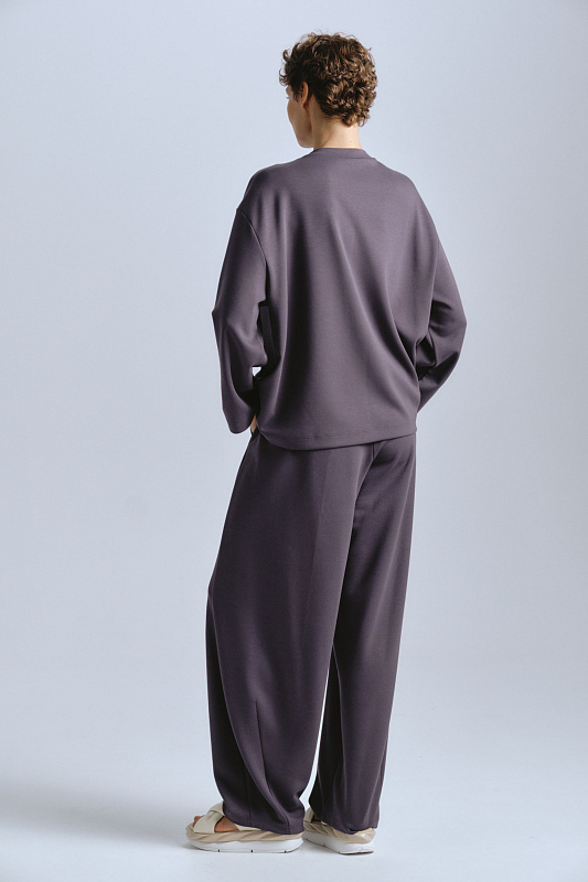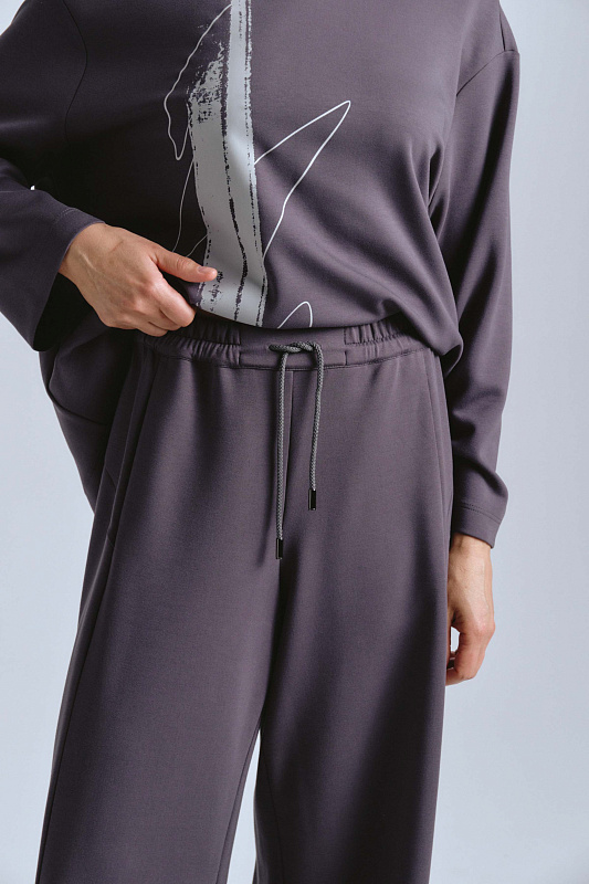 Модель брюк, которая имеет свободный крой в области бёдер и зауженный низ. Брюки выполнены из мягкого трикотажа джерси, который невероятно приятен тактильно и обеспечивает комфорт при носке. Задняя кокетка не только акцентная деталь, но и дизайнерский прием для правильной посадки модели. Эластичная резинка со шнурком на поясе, а также удобные карманы дополняют модель для создания удобных, но при этом стильных и универсальных образов в стиле спорт-шик.