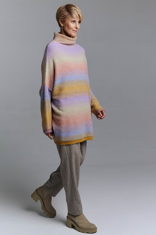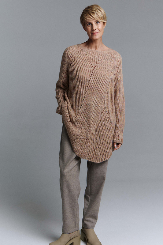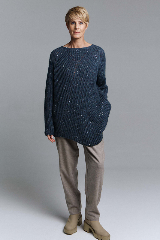 Брюки оригинальной дизайнерской конструкции из мягкой шерстяной ткани силуэта «бананы» с внутришовными карманами. Удобная высокая посадка, застежка на молнии и пуговице, пояс сзади на резинке.