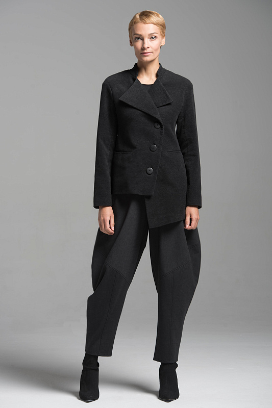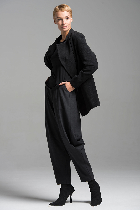Шерстяный брюки силуэта Большой ромб. Пояс с гульфиком, по бокам наклонные карманы.