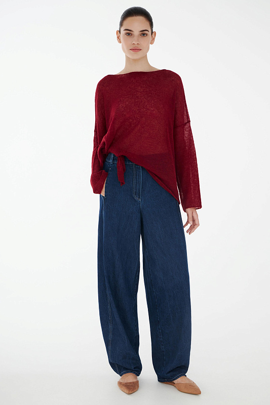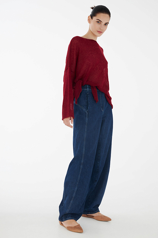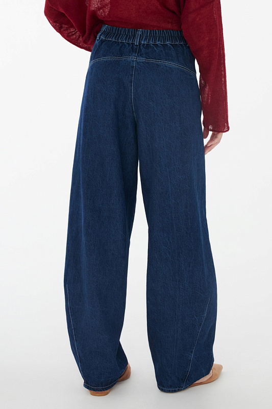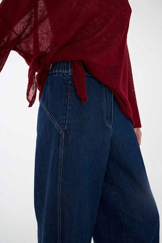 Свободные в бедрах и зауженные к низу дополнительной строчкой, брюки бананы делают соблазнительным изгиб силуэта. Деталь, которую дизайнеры добавили в крой отвечает за посадку — задняя кокетка. Именно от нее зависит то, насколько привлекательным будет ваш вид сзади. Пояс на резинке сзади, удобные карманы добавят комфорта. Модель выполнена из прочного денима, который сочетается с любой вещью из вашего гардероба. Благодаря специальной варке на ткани образуются естественные заломы и потертости, создавая актуальный сейчас «винтажный» эффект.