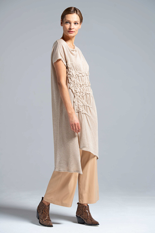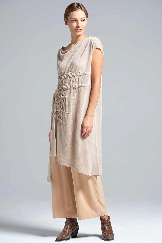 Брюки кюлоты с поясом на резинке и кулисой со шнурком, с карманами в шве. Кюлоты - универсальный вариант для любого гардероба, они отлично будут смотреться в повседневном дневном и деловом костюме, а также в вечернем варианте. Ткань - нежная и мягкая вискоза. Длина изделия по боковому шву 94см.