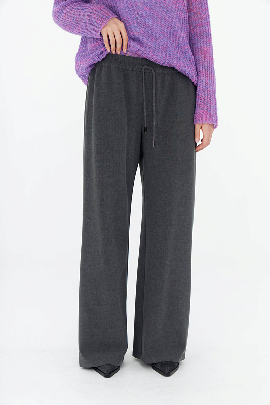 Модель брюк в стиле спорт шик. Этот стиль позволяет выглядеть современно и комфортно, при этом сохраняя женственность и утончённость. Элементами спортивного стиля в этой модели выступает резинка и шнурок на поясе, глубокие карманы, а элегантность подчеркивает прямой крой и невероятное качество ткани. Вискоза - струящаяся, приятная на ощупь, стала идеальным материалом для создания этих брюк. Добавление небольшого процента нейлона делают изделие легким в уходе.