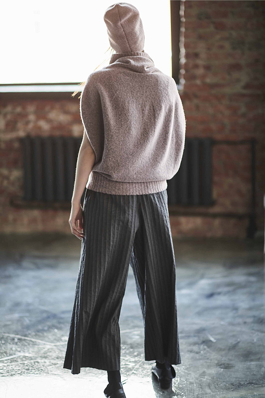 Ткань тонкая шерсть с хлопком практически не мнется, а эластан в составе позволяет чувствовать себя комфортно и расковано в движении. Длина по спинке 97 см.