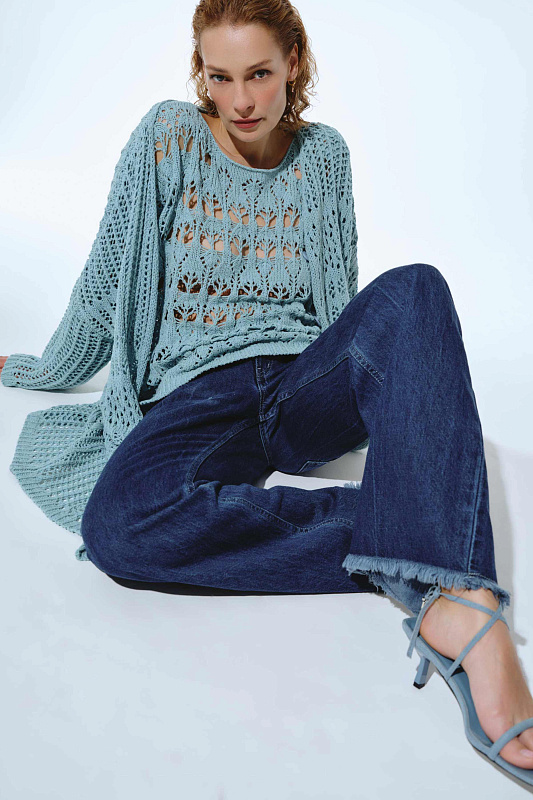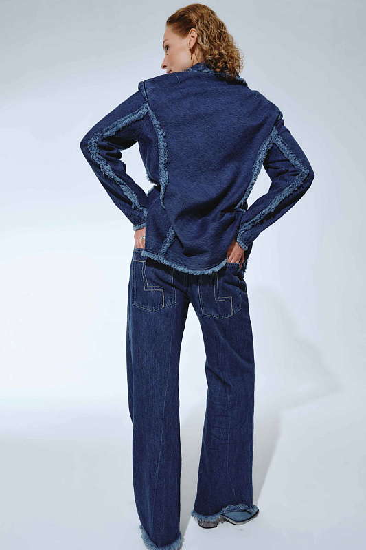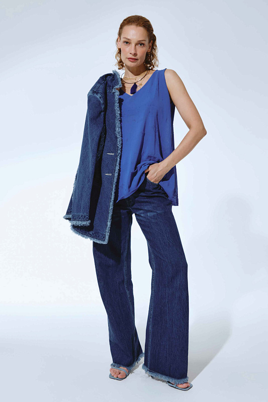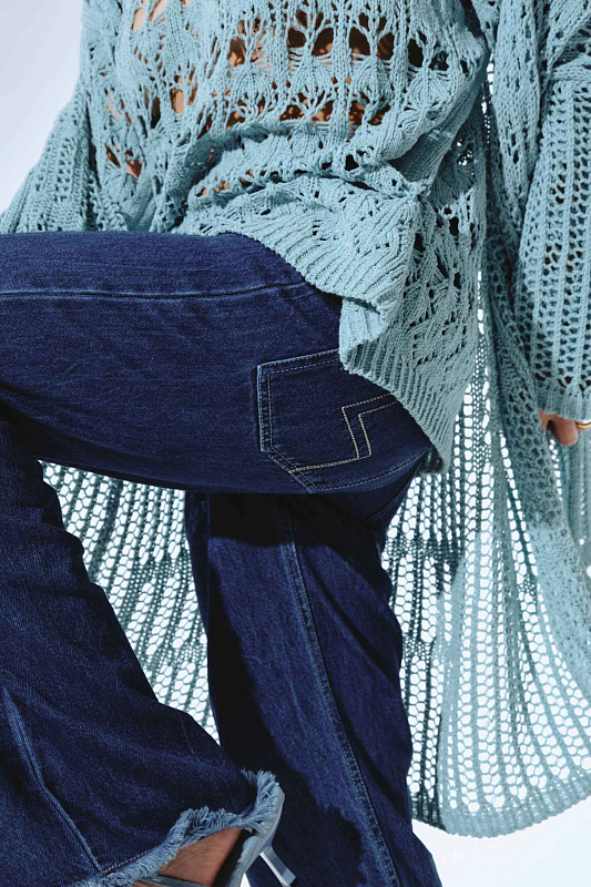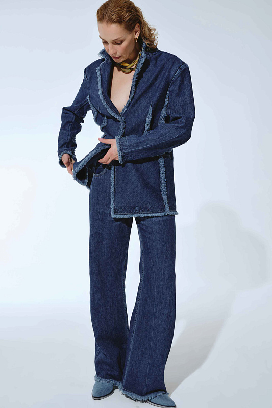 Джинсы- трубы с высокой посадкой визуально вытягивают и удлиняют силуэт. Модель выполнена из прочного денима, который будет сочетаться с любой вещью из вашего гардероба. Карманы сзади подчеркнуты вышивкой в виде логотипа бренда. Благодаря специальной варке на ткани образуются естественные заломы и потертости, создавая актуальный сейчас «винтажный» эффект. Особый акцент - необработанные края брючин.