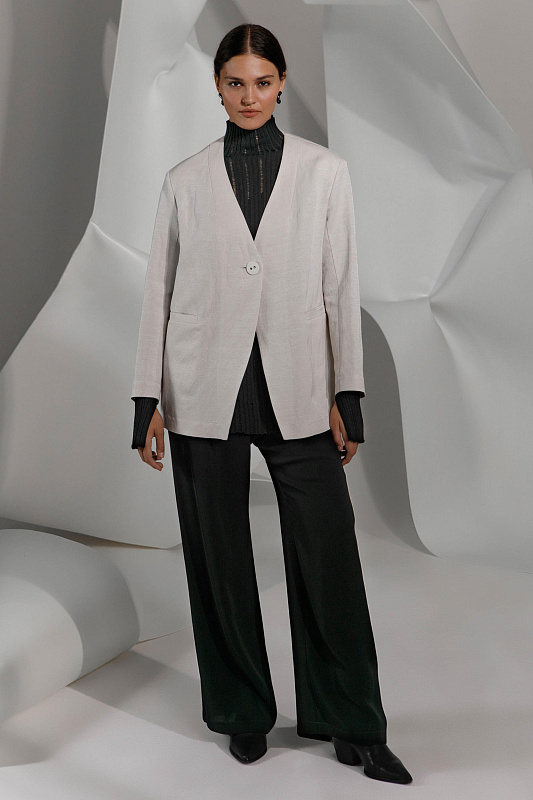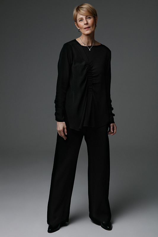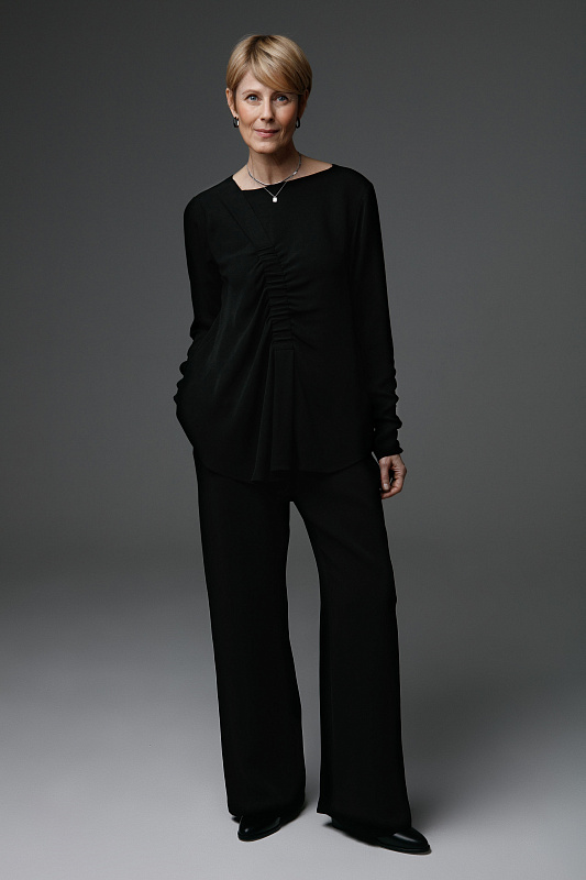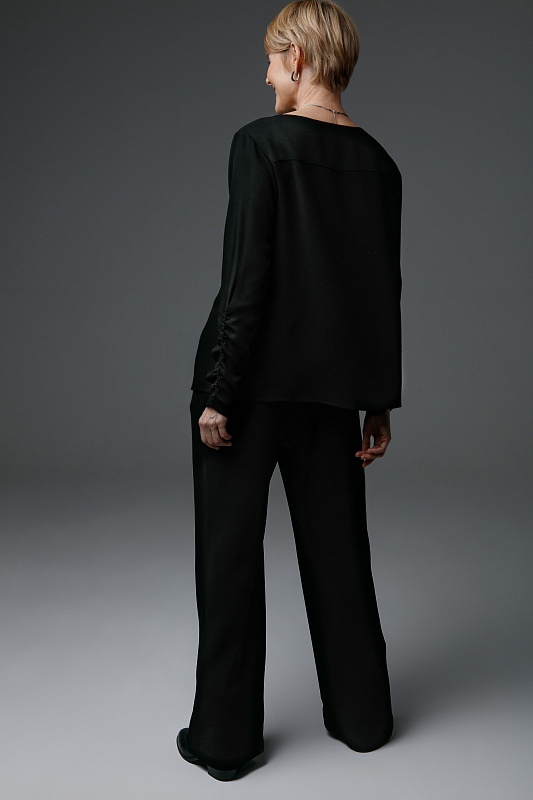 Брюки из плотной матовой вискозы с идеальной посадкой по фигуре прямого силуэта. Пояс сзади на резинке. Застежка - молния. Прорезные карманы с листочкой. Прекрасная основа для создания как эффектных вечерних, так и образов на каждый день.