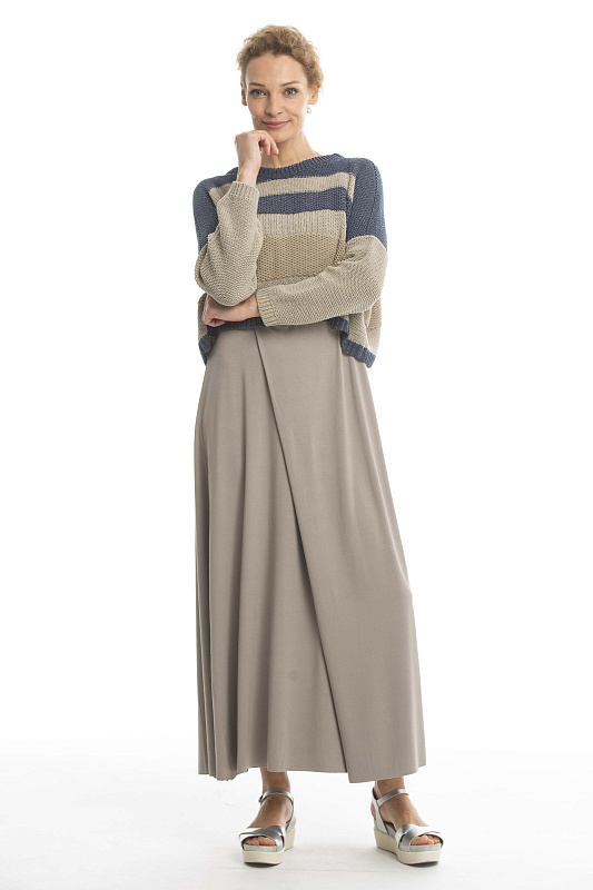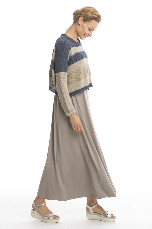 Укороченный вязаный джемпер с длинными рукавами комбинированной вязки.
