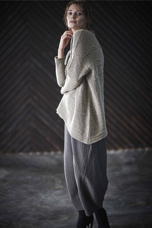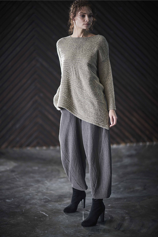 Теплый и уютный джемпер Валики, тонкая шерсть, итальянская пряжа, оригинальный дизайн, вырез горловины лодочка, объемный рисунок на полочке и спинке, спущенная линия плеча, А-силуэт в сочетании с ассиметрией края изделия.