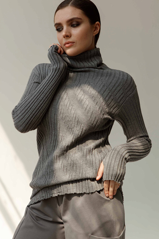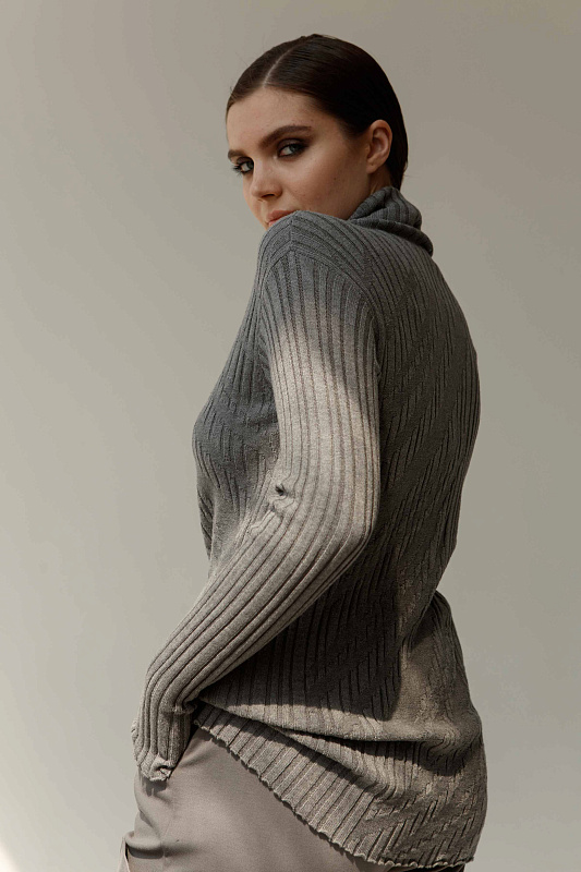 Мягкая облегающая водолазка из нежной  вискозы с кашемиром и абстрактным рисунком. Воротник стойка, удлиненный рукав с вырезом для большого пальца.