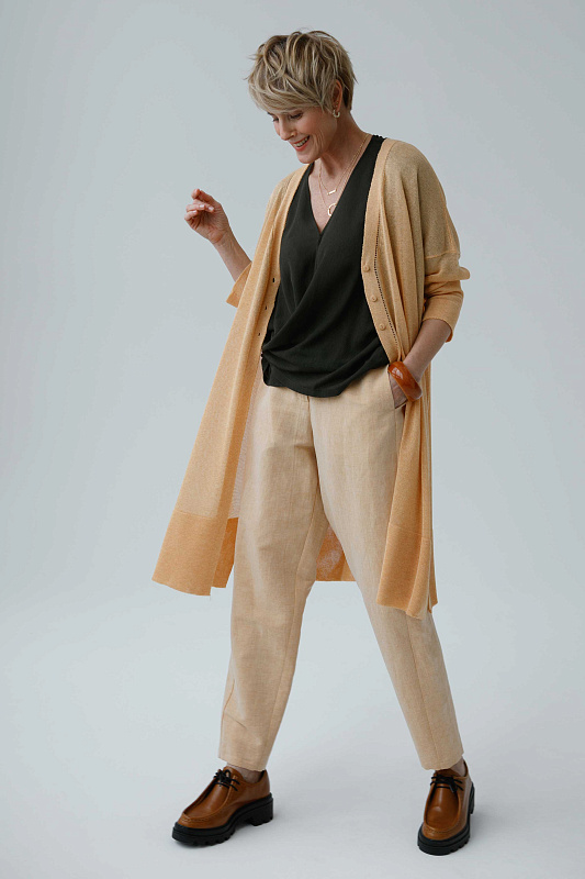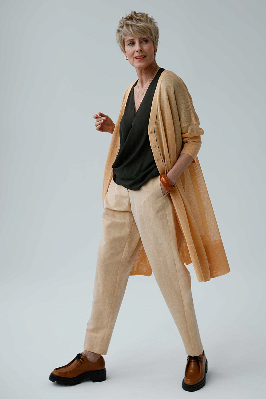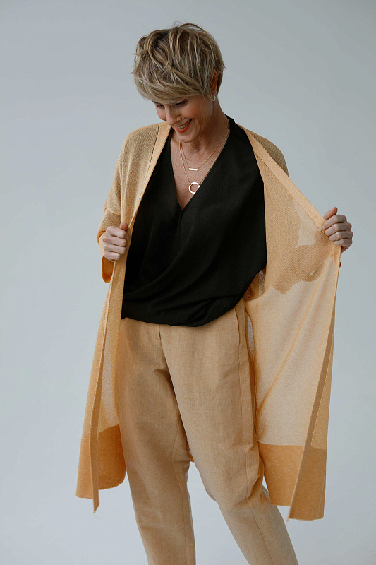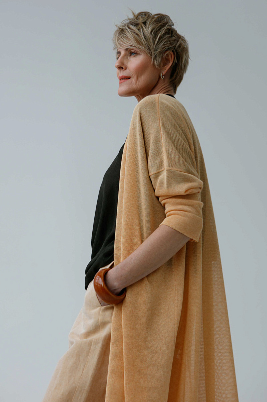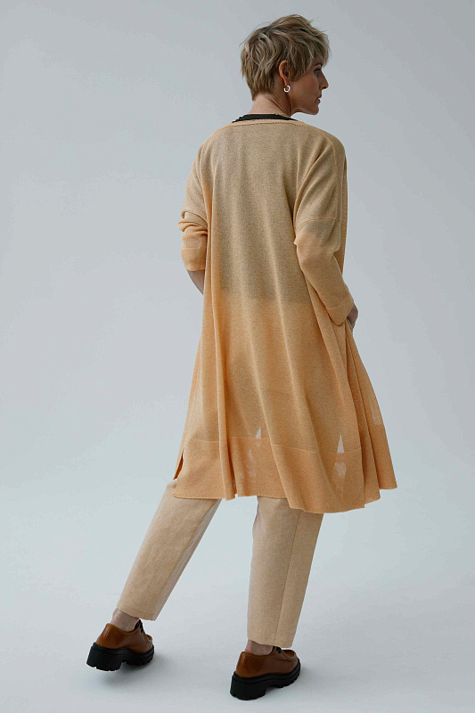 Легкий и комфортный удлиненный кардиган прямого силуэта с длинным рукавом. Полупрозрачное струящееся полотно. Модель выполнена из тонкой и нежной Итальянской вискозы с ненавязчивым блеском.