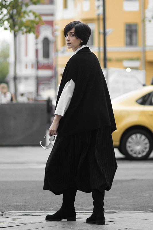 Накидка кейп, сложной дизайнерской конструкции, на завязках, прорези для рук обвязаны тонкой резинкой, объемный рисунок по полочке и по спинке. Кейп добавит таинственности и загадочности образу, к тому же ничего лучше для холодных дней, чем теплая вязаная накидка из итальянской вискозы, которая никогда не упадет с плеч.