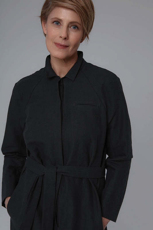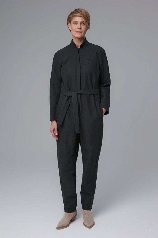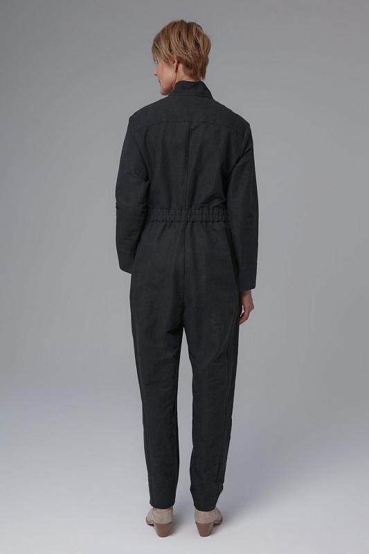 Костюмный комбинезон станет идеальным спутником для тех, кто живет в режиме 24/7. Днем его можно сочетать с удобными туфлями на низком каблуке, а вечером — с ботильонами на шпильке. Модель выполнена из эластичного льна с добавлением хлопка. Рубашечный воротник, супатная застежка на пуговицы. По спинке на линии талии деликатная резинка, переходящая в пояс. Манжеты на рукавах с изящными разрезами, которые подчеркивают запястья. Дополнительный акцент – фальшкарман на левой полочке.