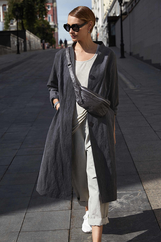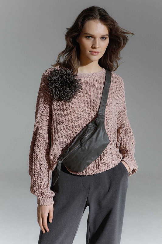 Поясная сумка из мягкой натуральной кожи с мятым эффектом. Регулируемый ремень. Компактное основное отделение на металлической молнии. У модели имеется один внутренний карман и один внешний карман на молнии с тыльной стороны.