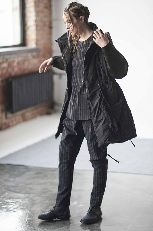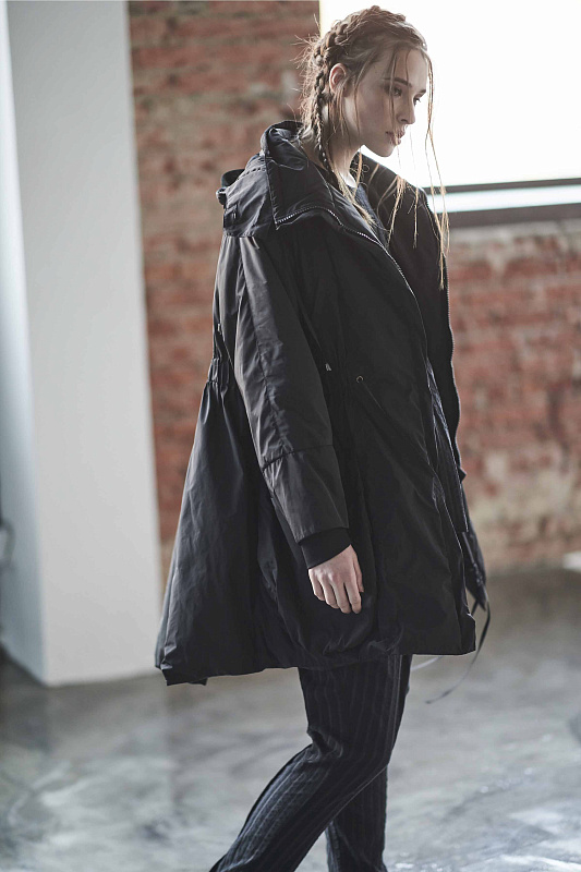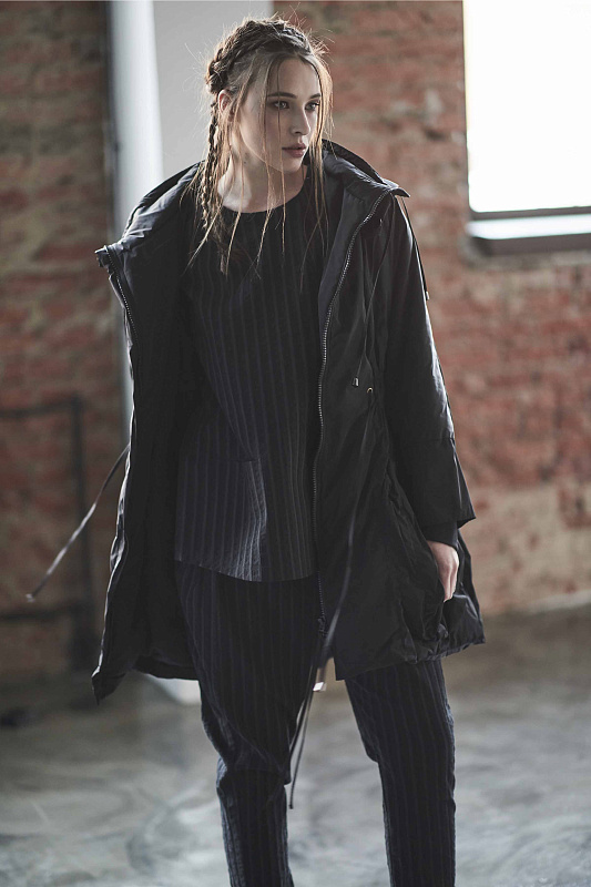 Большая тракторная молния, капюшон пристегнут на пуговицы, при необходимости его можно затянуть фиксаторами, воротник стоечка и талия так же затягивается фиксаторами, карман листочка по линии груди, модный тренд - карманы-портфели с карманом листочкой, прямая линия борта. Парка оригинальной дизайнерской конструкции создает неповторимый образ, не теряя главной функции - защиты от дождя, холода и ветра. Длина изделия по спинке 98см.