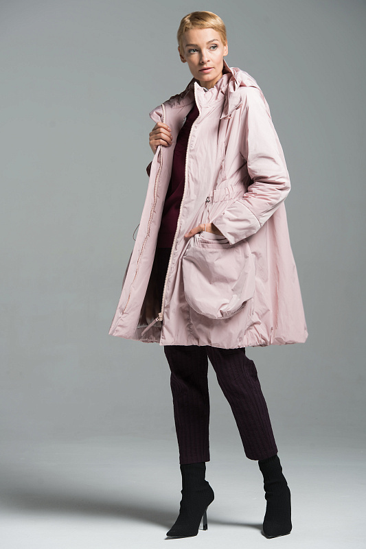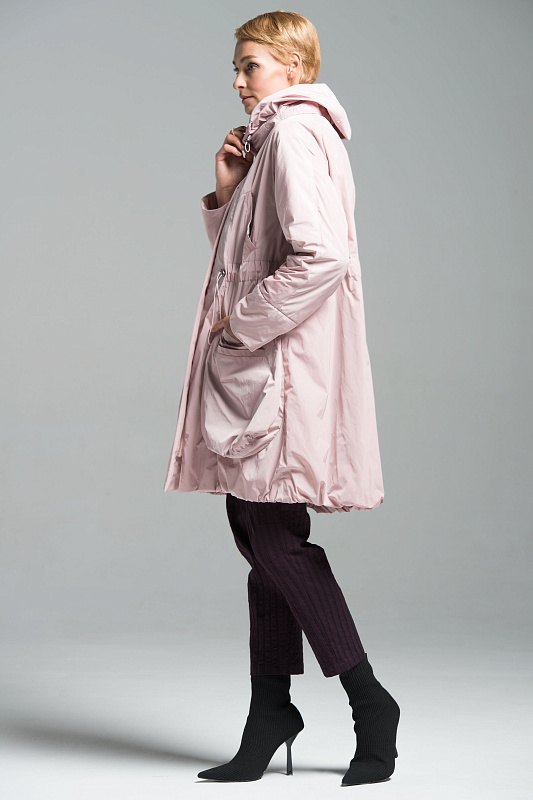 Большая тракторная молния, капюшон пристегнут на пуговицы, при необходимости его можно затянуть фиксаторами, воротник стоечка и талия так же затягивается фиксаторами, карман листочка по линии груди, модный тренд - карманы-портфели с карманом листочкой, прямая линия борта. Парка оригинальной дизайнерской конструкции создает неповторимый образ, не теряя главной функции - защиты от дождя, холода и ветра. Длина изделия по спинке 98см.