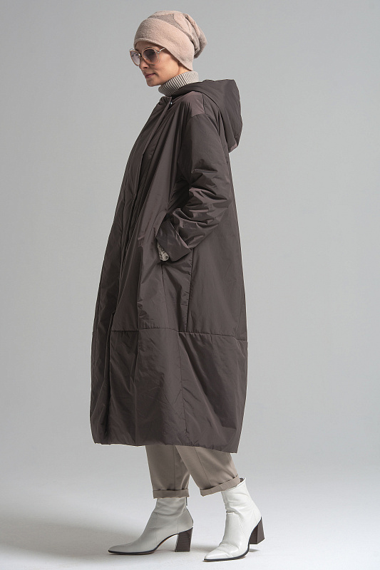 Пальто с утеплителем силуэта «ромб», на молнии, борт на кнопках. Удобный и теплый глубокий капюшон, карман в шве, спущенная линия плеча. Уникальная водоотталкивающая ткань «хамелеон». Стильное практичное пальто, дизайн которого следует последним трендам, не теряя главной функции — защиты от дождя, холода и ветра.