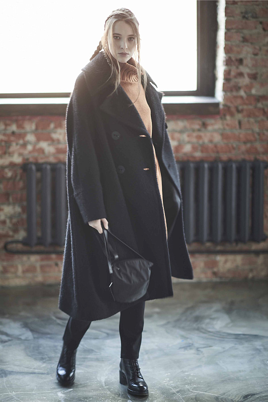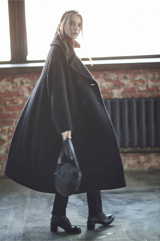 Стильное и элегантное шерстяное пальто на пуговицах, воротник с лацканами, V-образный вырез горловины при необходимости можно застегнуть, карманы в шве, прямая линия борта, сложный комбинированный рукав цельнокроеные по спинке и втачной по переду с ластовицей, встречная складка по спинке.