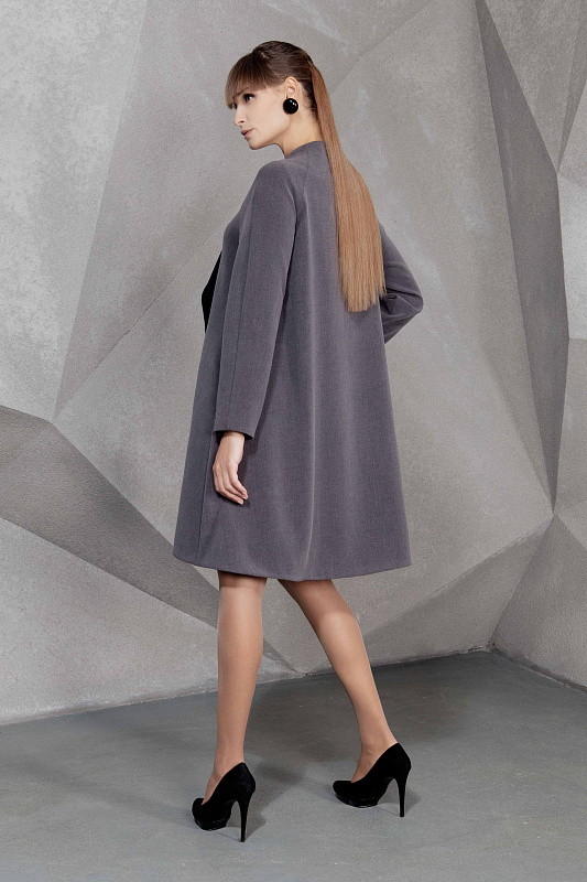 Встретить весну мы предлагаем в укороченном пальто-трапеции. Асимметричный крой, сочетание черного и серого. Пальто из плотной вискозной ткани, на подкладке, застежка-молния